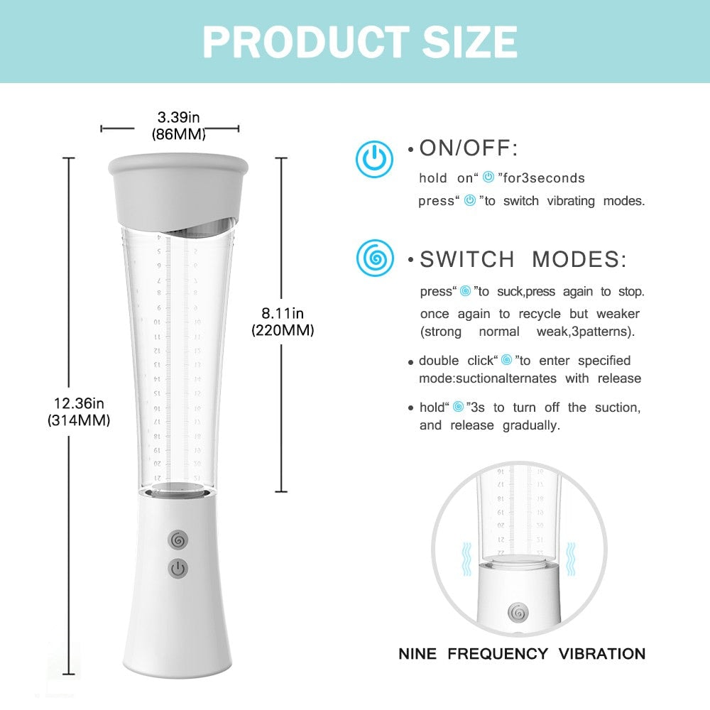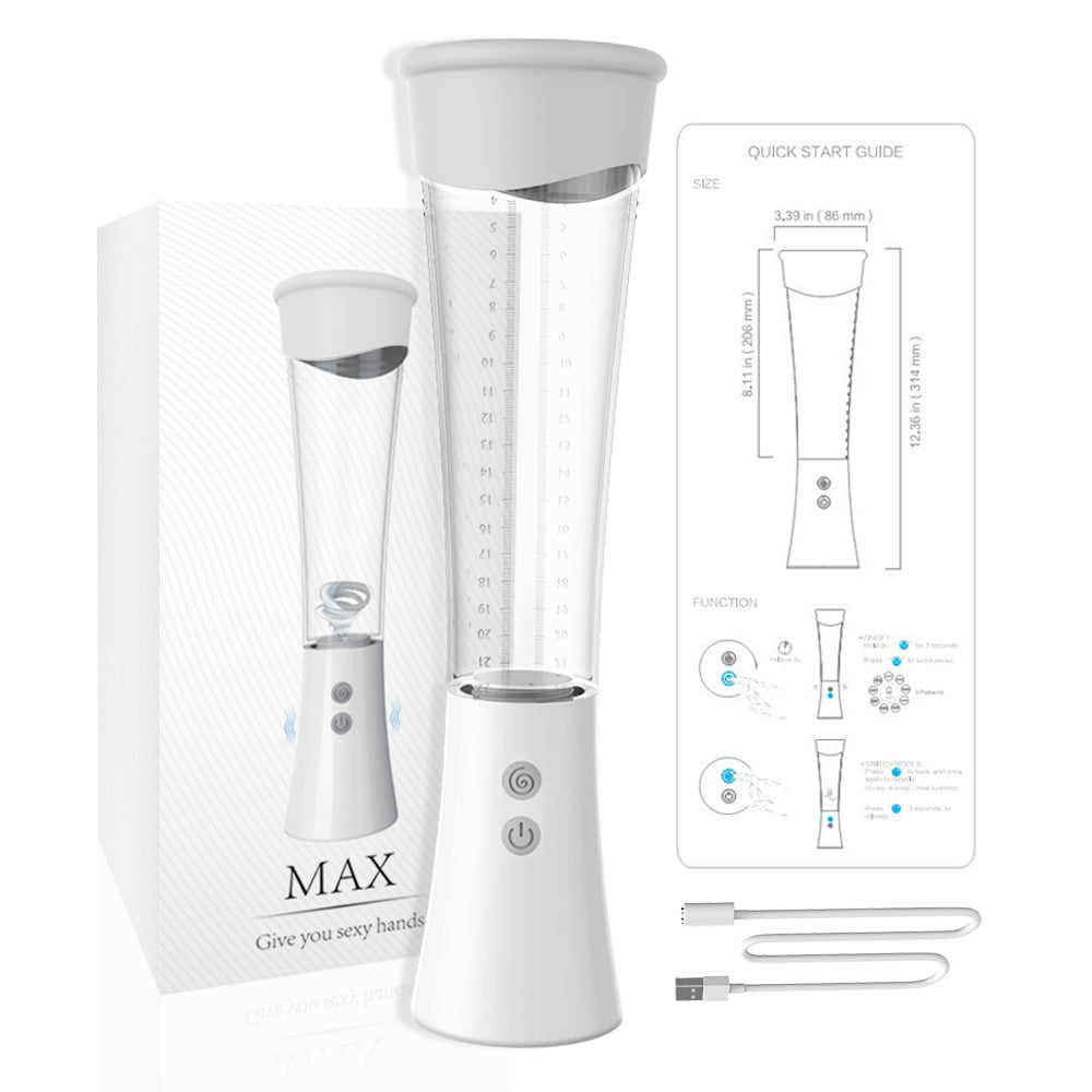 Transform your intimate experience with the Max Electric Penis Pump! With strong suction and a unique vibration mode, this male penis pump is designed to enhance pleasure and promote blood flow. The modern design is both sleek and discreet, while its waterproof feature allows for versatile use. Elevate your bedroom game today.